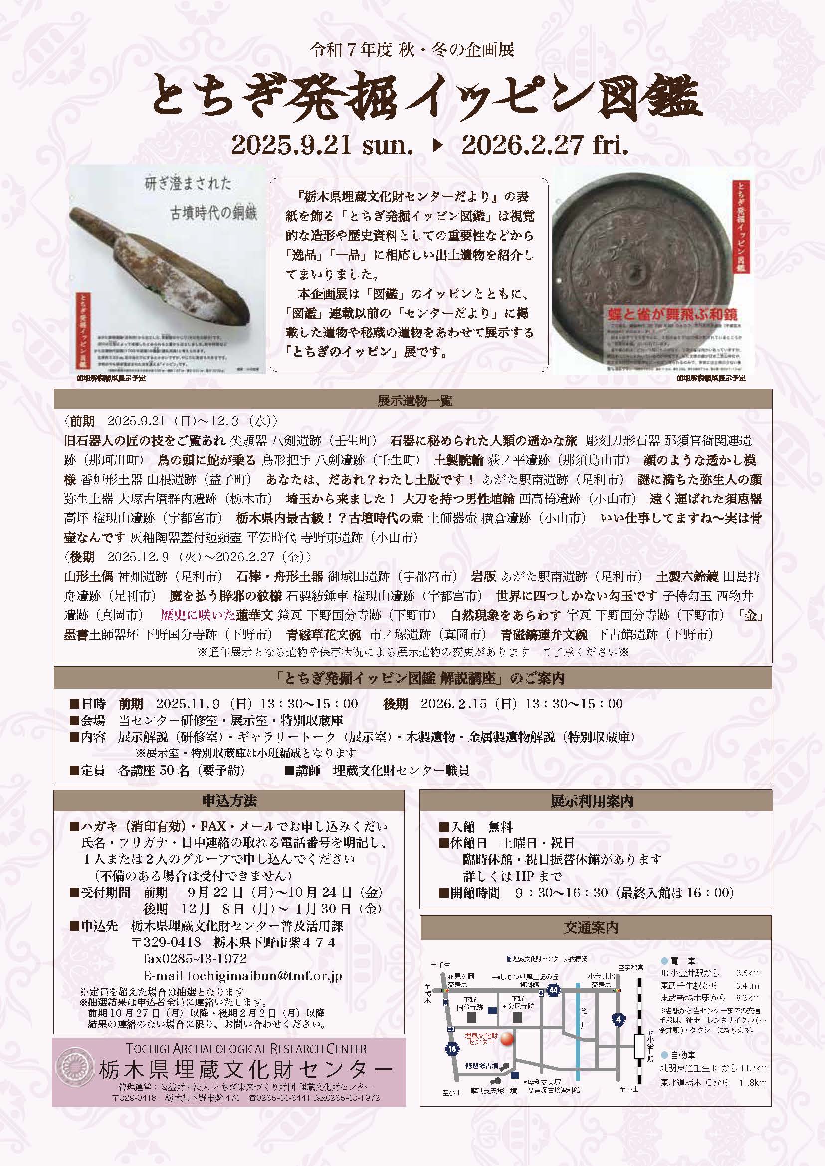 9月21日(日)から秋冬企画展を開催しております。栃木県埋蔵文化財センター情報誌の表紙で「とちぎ発掘イッピン図鑑」の企画をはじめて10年を迎えました。その表紙を飾ったイッピンをご紹介します。お楽しみください。