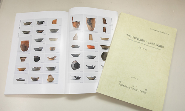 発掘調査報告書 報告書の内容は遺構や遺物の記録が中心となっています。そのほか調査の目的や方針、経過、遺跡の立地、自然科学的分析の報告・史的解釈等を記載し、発掘調査の成果を記録として未来に繋げていきます。 | ![]() |